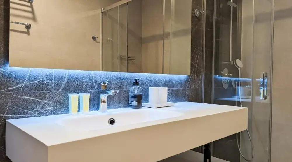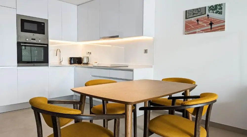Todo era nuevo e impecable, nos sentimos como si fuéramos los primeros huéspedes en alojarnos allí. Un nuevo complejo con piscina climatizada, moderno gimnasio, canchas de fútbol y tenis, y parque infantil y piscina para los más pequeños. En el balcón hay una cómoda cama ajustable electrónicamente en la que incluso puedes dormir si lo deseas. La vista desde el balcón es maravillosa. En las inmediaciones hay una hermosa playa de arena, tiendas y cafeterías. ¡Mi familia y yo quedamos absolutamente encantados!